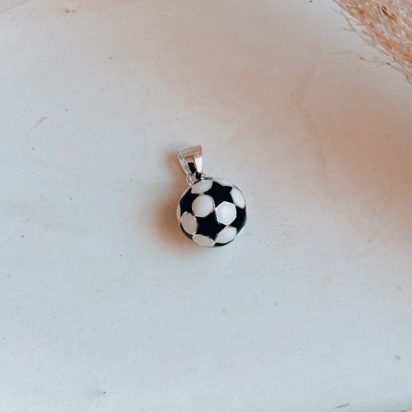Diseño: Dije en forma de pelota de futbol esmaltada en color negro y blanco